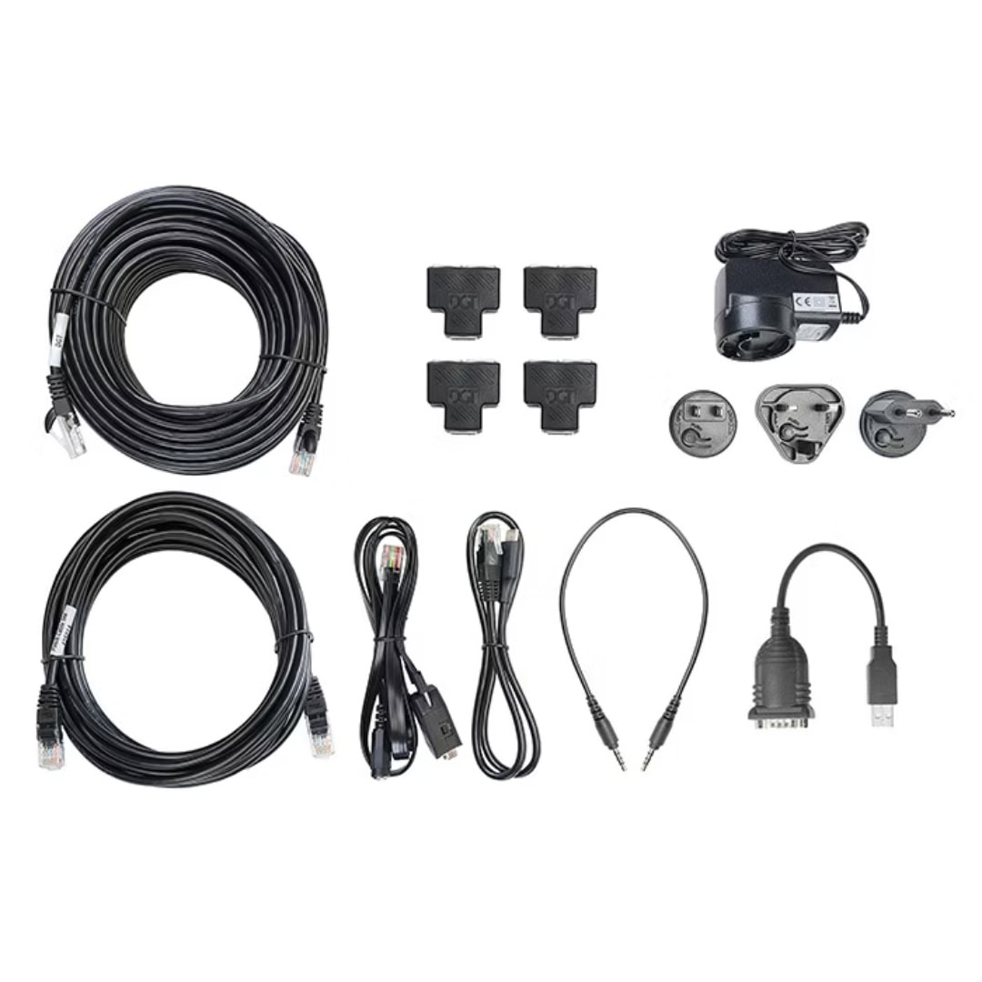 Kit esencial para la retransmisión de torneos que incluye cargador, chipset, cables de alimentación y conexión usb con conversor tipo C-USB para PC, Cables de red UTP45 de 50 y 30 metros con duplicadores. Todo lo necesario para conectar hasta un primer tablero en serie.