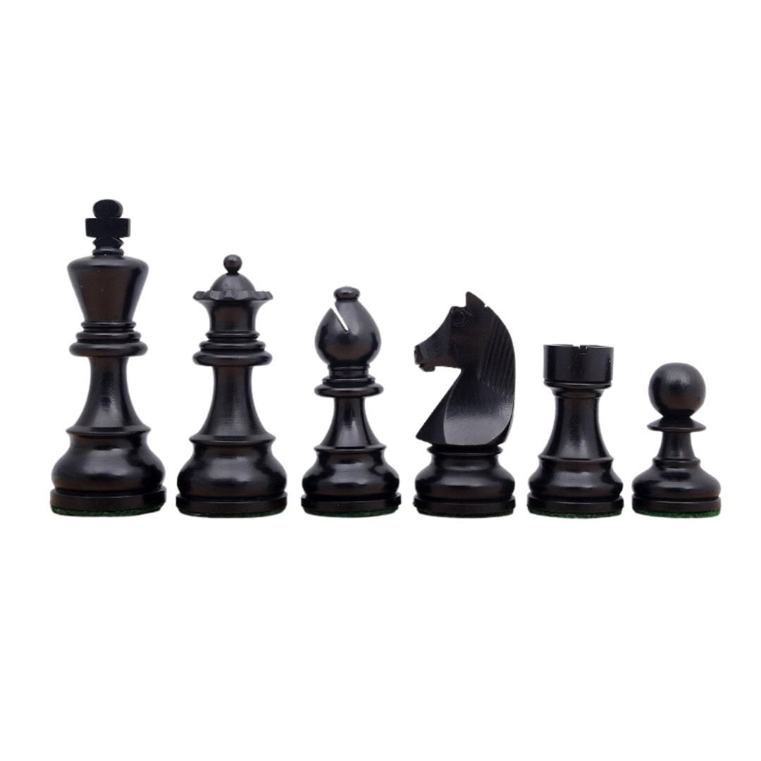 Piezas de ajedrez de estilo alemán, fabricadas en madera de boj natural y boj ebonizado, disponibles en dos tamaños: 3,5″ y 3,75″, equivalente a Staunton nº5 y nº6 respectivamente. Están elaboradas artesanalmente, cuidadosamente pulidas y plomadas, presentan un diseño sobrio y atemporal, siendo válidas para torneos oficiales.