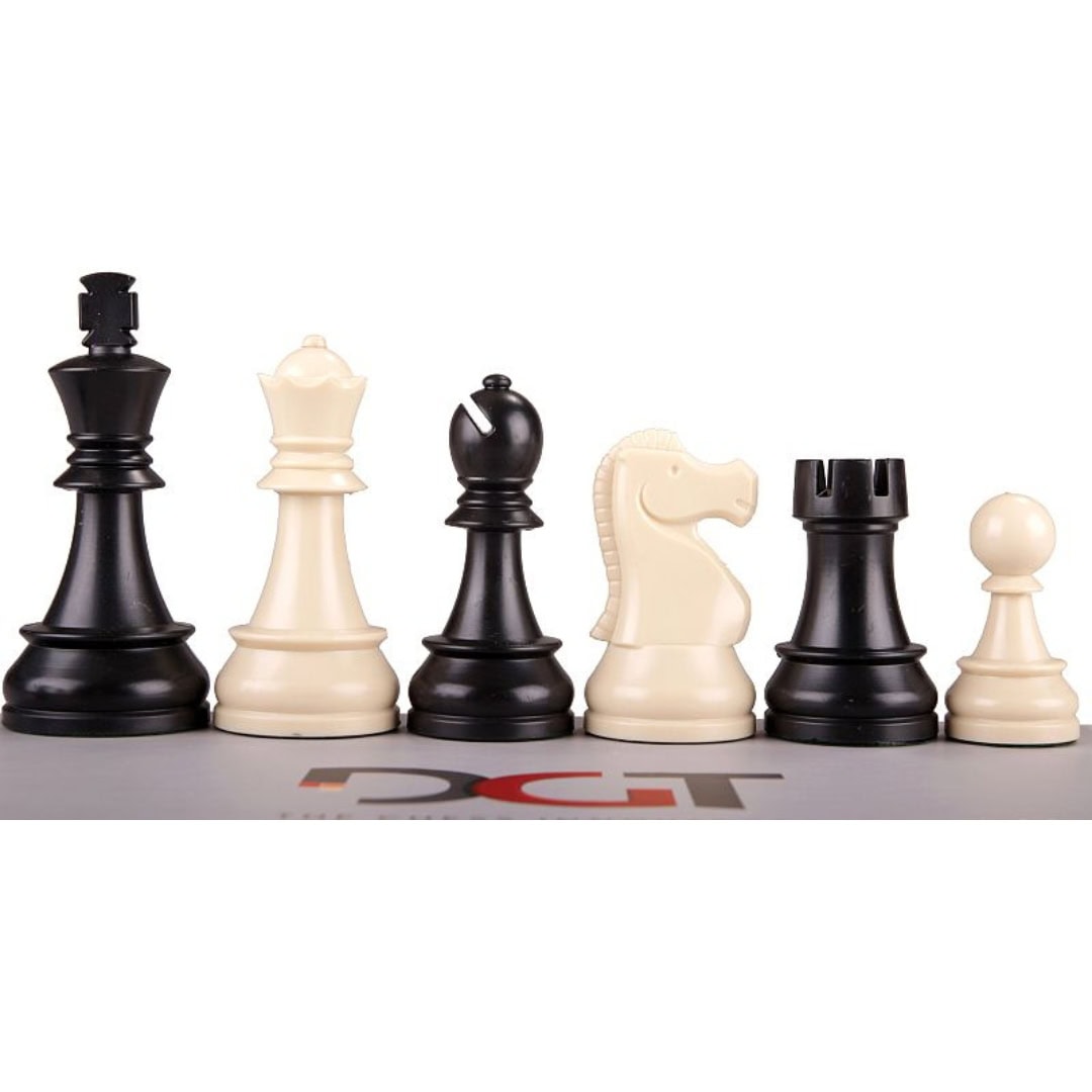 Estas piezas de ajedrez de la marca DGT tienen un diseño original siendo a su vez muy económicas y las más resistentes del mercado, «indestructibles». Hechas de plástico con base de fieltro, tienen un acabado muy agradable al tacto y están perfectamente contrapesadas, con plomada. Se presentan en dos tamaños: las medidas, 86mm y 95mm, hacen referencia a la altura del rey, y se asemejan a Staunton 5 y 6 respectivamente. Se presentan en bolsa de plástico.