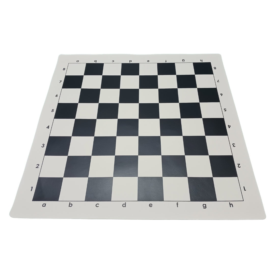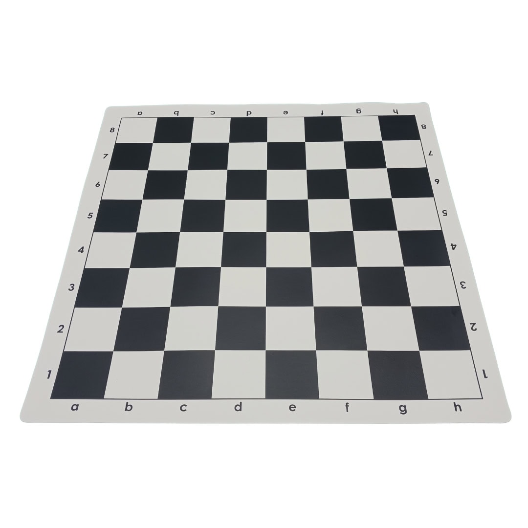 Tablero de vinilo flexible de alta calidad, con coordenadas. A elegir entre dos tamaños: 51x51cm o 56x56cm, con 56mm y 60mm de casilla respectivamente. Combina perfectamente con las Piezas DGT o Ligeras de 95mm (altura del rey), o de plástico oficiales Staunton 5/6.